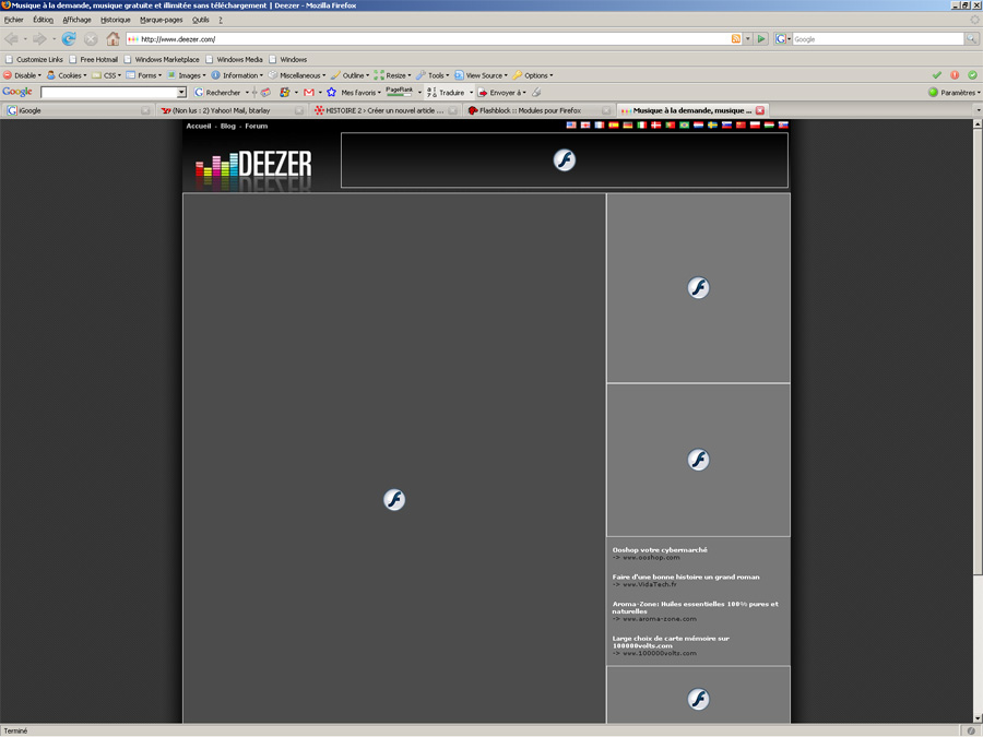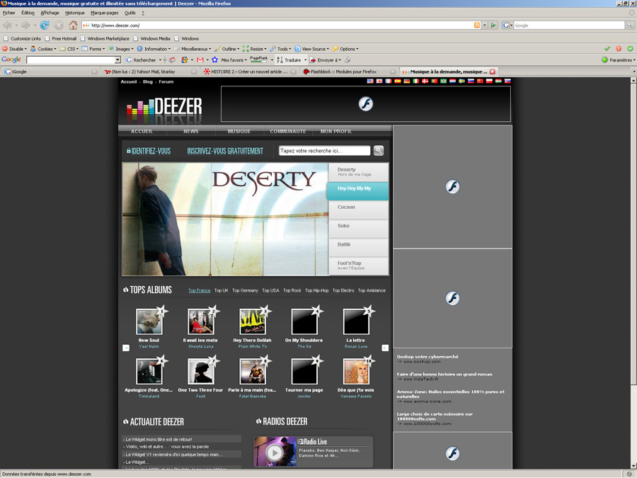 Une petite remarque Chou, faut connaitre le site avant pour savoir où il faut cliquer non? Ah moins qu’il y ait un texte indiquant le contenu au passage de la souris? Par exemple sur Deezer : colonne de droite en haut c’est le player, en dessous c’est une pub…