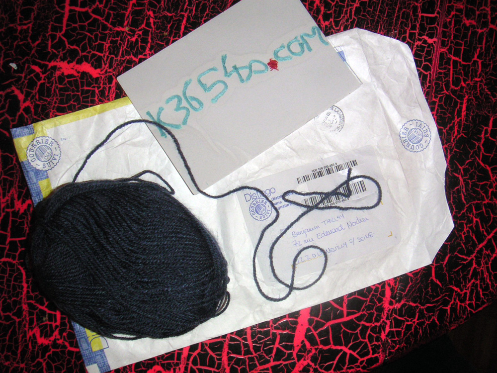 On vit en compagnie d’animaux presque sauvages, bon ok j’exagère (BARBIE dit que je multiplie tout par 3), et ces chères bestioles sont très curieuses de tout nouvel élément débarquant dans notre antre. Dans le paquet mystérieux, une pelote de laine et un code en lettre de laine, (y’en a qui se sont pris la tête).