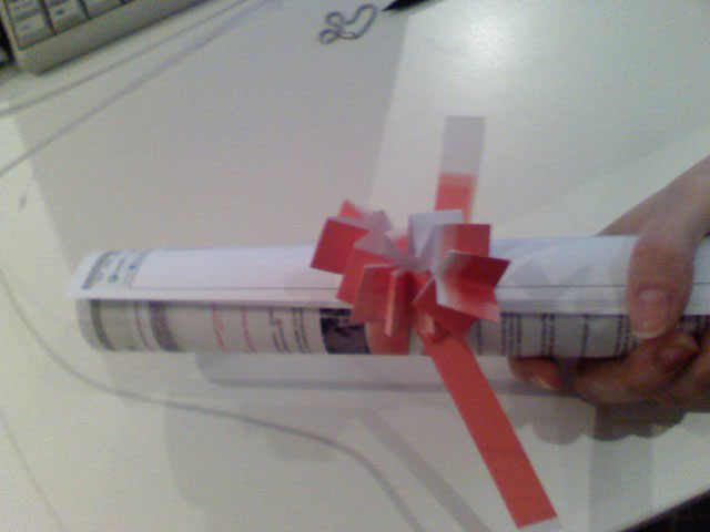 Dans la journée, je previens un peu tout le monde et Cédric vient, cool !! A midi je prépare mon texte et je fais même un petit « paquet », ça donnera plus envie de le regarder enfin j’espère. Avec Ced on se retrouve à 19h, et après quelques minutes shoppesques on se rend au point stratégique.