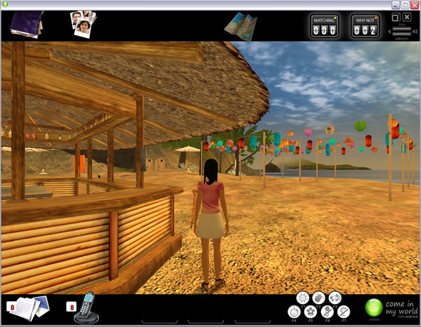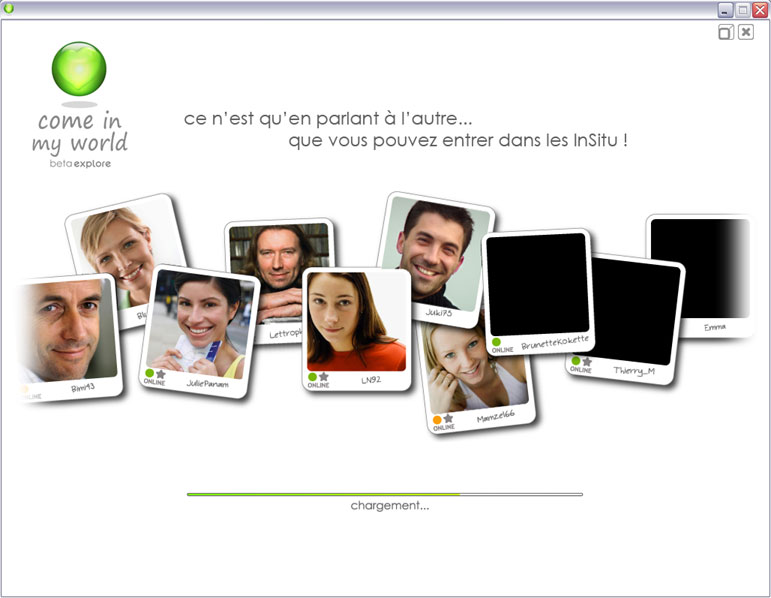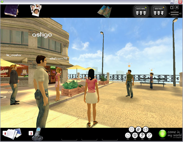 A priori, même si je n’ai jamais joué aux Sims, ça m’y a fait penser, en version « aliasée » (car bêta?): un univers 3D avec des bonhommes qui se baladent avec un truc au-dessus de la tête, en l’occurrence la « bulle » CimW verte ou orange selon votre compatibilité.