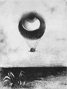 Nouvelle zone, nouveau thème, et là évidemment L’oeil comme ballon bizarre se dirige vers l’infini d’Odilon Redon me plait grave. C’est à fond surréaliste et bizarre et donc j’aime. Et là le noir et blanc c’est normal c’est comme ça en vrai.
