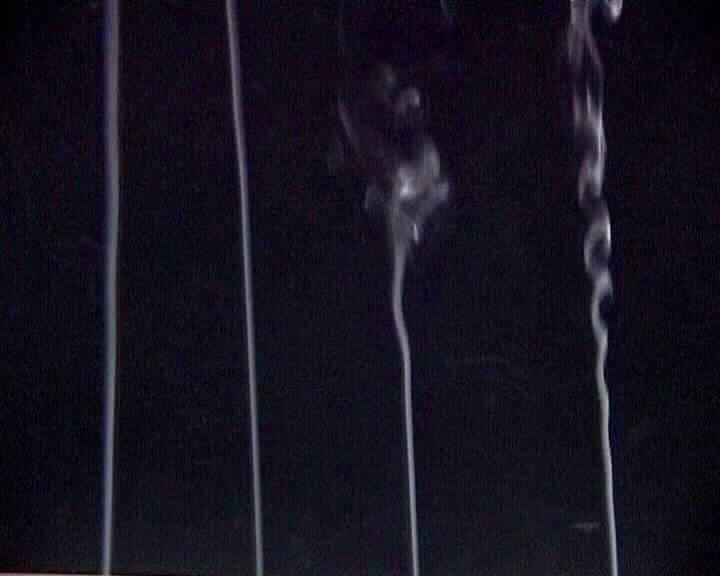 Plus loin, j’ai apprécié la beauté simple de la vidéo projetée de Yazid Oulab, Le souffle du récitant comme signe, des volutes de fumée formant apparemment des textes…