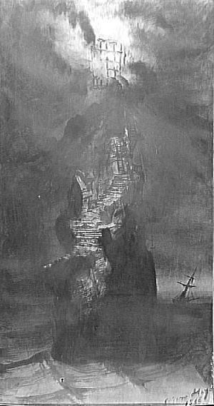 Je trouve ce tableau mystérieux, on a envie de rentrer dans le tableau – enfin là en noir et blanc ça rend pas pareil mais j’ai pas trouvé mieux… En réalité il est très sombre et ça donne envie de découvrir ce qu’il cache.