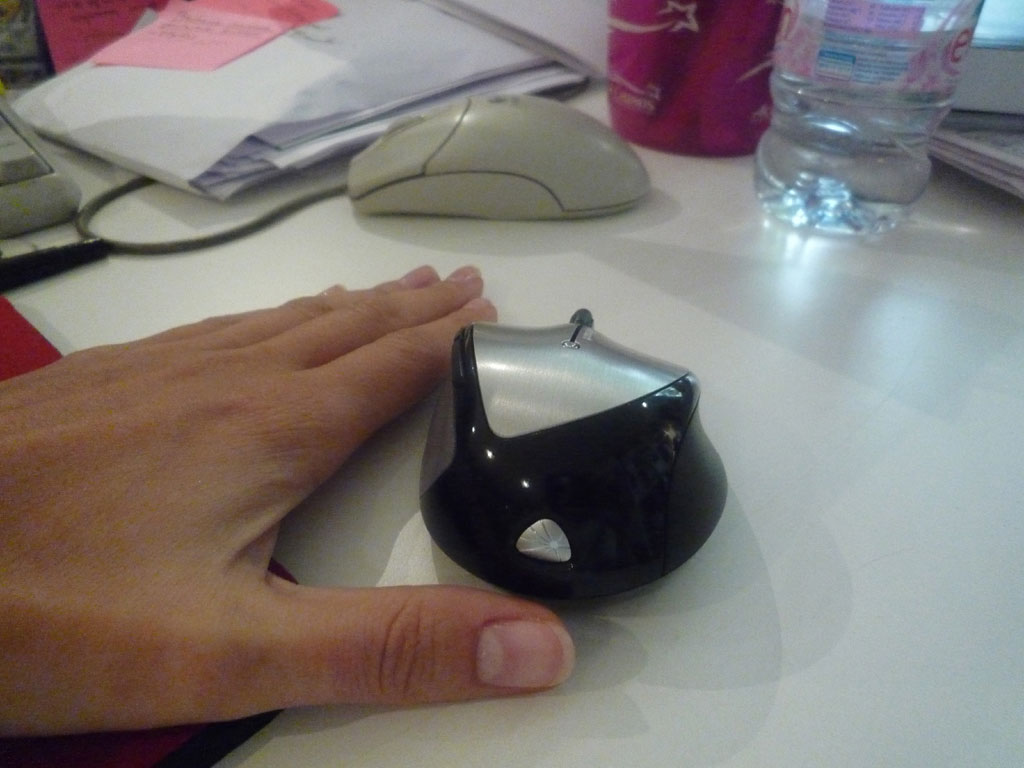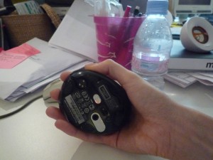 La première prise en main est, je l’avoue, un peu surprenante. En effet cette souris est plus petite qu’une souris standard et je n’ai encore jamais eu l’occasion d’utiliser réellement des souris pour portables. La main est penchée et recouvre toute la souris. Si ça m’a perturbé quelques instants, j’ai fini par m’y habituer et la trouver hyper confortable. L’ergonomie est parfaite (si vous êtes droitier – pas de modèle gaucher et ça c’est pas bien !) et elle est hyper facile à manipuler.