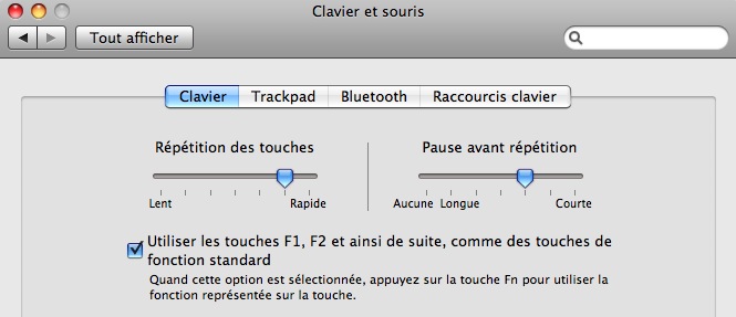 Pour mon clavier j’ai activé l’option permettant d’utiliser les touches F1, F2, F3, … F12 comme des touches standards :