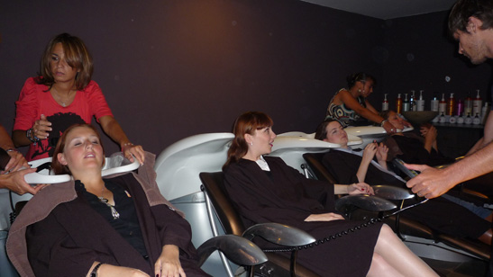 Une fois tout ça entendu on est passé à la partie chouchoutage en série. Pour nous, des coiffeurs, maquilleurs, manucures prêts à réaliser nos désirs.