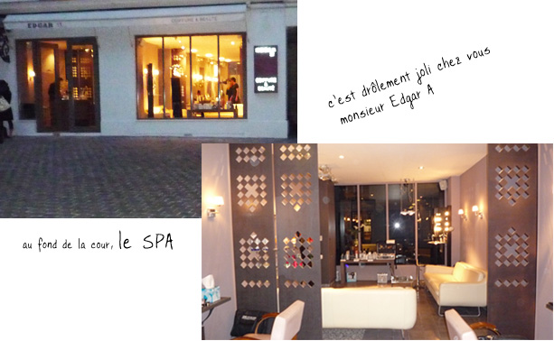 J’ai commencé à ouvrir les yeux et à faire wahhhhh c’qu’il est chouette ce SPA Edgar A Paris, et puis j’ai mangé tout plein de makis (ça réconforte de manger) et j’ai bu de l’eau (dur à trouver dans une soirée filles au champagne 😉 ).