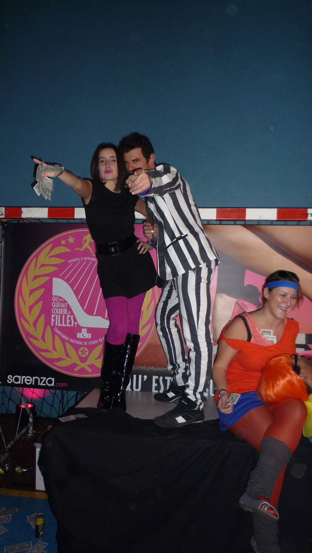 Après la course, la remise des prix au 3 premières équipes (plus de détails sur les résultats sur le blog de Sarenza) et aussi aux looks les plus réussis (j’aurais pas choisi ceux là mais bon) et puis la soirée after sprint mais on n’est pas resté bien longtemps, juste le temps pour moi de continuer un peu à me marrer dans un look plus « normal » ;).