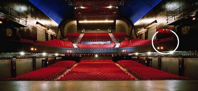 Les 2 gagnants, A.rnaud et Gus (miss Sardine n’ayant pu venir), sont arrivés à l’heure et c’est agréable des gens qui arrivent à l’heure, et rare (comment ça je fais ma vieille?). Comme le retrait des places se faisait 3/4 d’heure avant le spectacle, on s’est vite engouffré dans l’Olympia pour éviter d’attendre au froid.