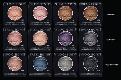 La gamme des fards à paupières Studio Secrets se base tout simplement sur la complémentarité des couleurs, mais si rappelez-vous : le jaune s’harmonise avec le bleu, le rouge avec le vert…