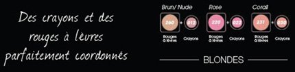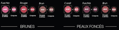 La ligne Studio Secrets propose donc une gamme ciblée de crayons à lèvres, rouges à lèvres et gloss organisée selon 3 phénotypes : blondes, brunes et peaux foncées.