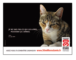 Le crime ordinaire, certaines personnes l’avaient deviné, c’est l’abandon d’animaux et la Fondation 30 millions d’amis a décidé de rompre cet anonymat prétexte à banaliser l’abandon en lui donnant, pour la première fois, un visage et en dénonçant directement les dizaines de milliers d’animaux abandonnés chaque été.