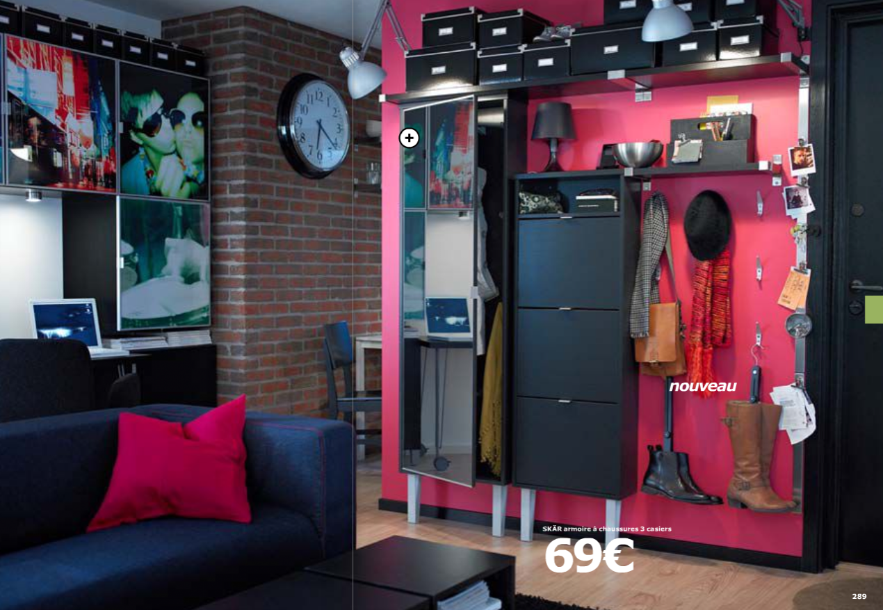 Pas mal de photos trop sombres (un problème avec le papier écolo?), un effort de nouveauté pour la section ados mais qui pique les yeux tellement c’est mal fait (p.186 à195), et sinon toujours le même principe que les quelques catalogues précédents (avant je ne sais pas, je n’achetais pas de meubles) c’est à dire des mises en scènes et quelques pages de détails de temps en temps.