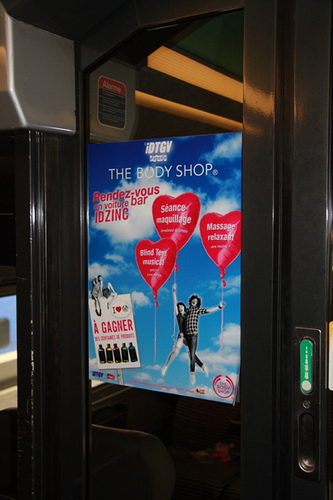 Départ de Paris en train, The Body Shop a eu la bonne idée de répandre l’amour à tous les voyageurs. Ainsi, dans le wagon bar IdZinc du train IdZap on a pu se faire maquiller, se faire masser et surtout jouer à des quizz musicaux sur le thème de l’amour.