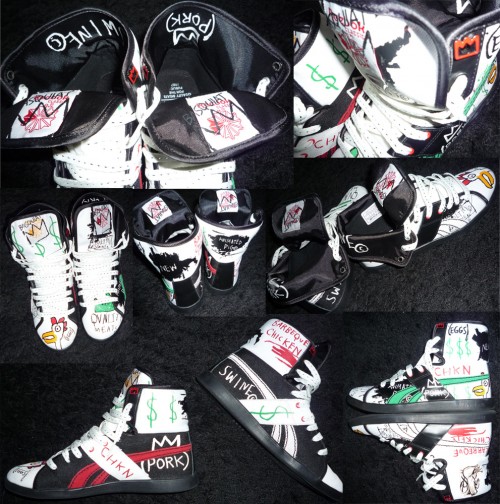 Mes nouvelles acquisitions sont une paire de Top Down Reebok, mais pas n’importe lesquelles, un modèle Affili’Art customisé par Basquiat, ce visage emblématique de la street culture New Yorkaise mais surtout grand artiste des 80’s et petit protégé d’Andy Warhol.