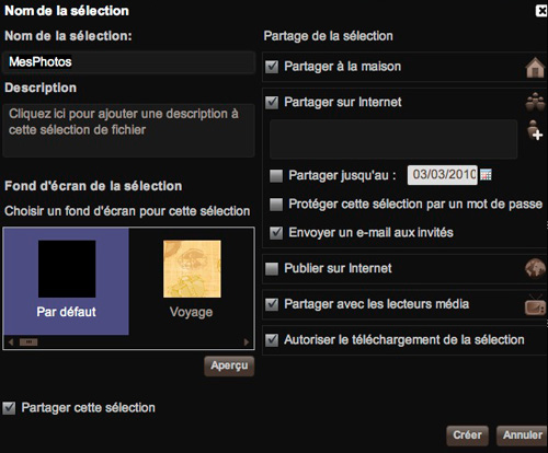 Par exemple, après des vacances, vous pouvez créer une sélection « Vacances été 2010″ dans lequel vous pouvez aller ajouter les photos des vacances sans avoir à les copier ou les déplacer, la musique que vous avez écouté, les vidéos que vous avez tourné … Du coup les autres membres de la familles pourront facilement visionner les contenus sans avoir à naviguer dans vos différents dossiers et comprendre votre organisation.
