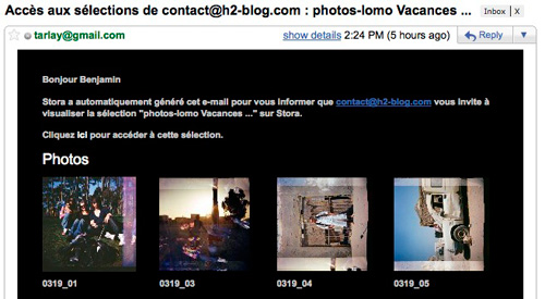 En fait vous pouvez pour chaque sélection demander l’envoi automatique d’un mail à un contact, celui-ci recevra directement un lien lui permettant de télécharger l’ensemble des fichiers d’une sélection.
