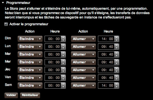 A noter que dans les configurations on peut spécifier une heure de démarrage et d’arrêt automatique du Nas.