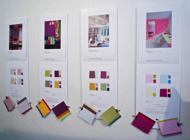 Une couleur derrière mon miroir Alice rendrait tellement bien, et puis j’ai envie de rayures aussi, depuis que j’ai vu une chouette déco dans l’émission Projet Haute couture 4. Bref, je veux de la couleur, et même si pour l’instant je ne passe pas le cap parce que ça demanderait un investissement assez absurde à la fin d’un bail, je me renseigne je regarde. Et comme si la nature m’avait entendue, une panthère noire est venue me proposer de découvrir les dernières tendances couleurs, à mettre sur les murs mais aussi un peu partout.