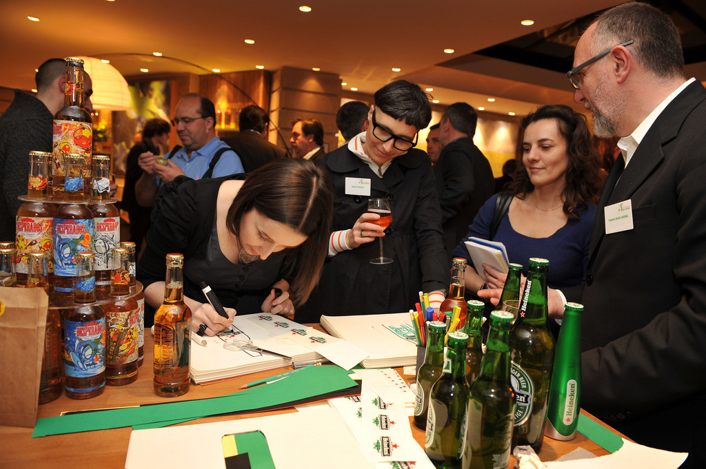 – Un espace dégustation : vous goutez en avant-première l’innovation bière 2010 de Kronenbourg : Kronenbourg Sélection des Brasseurs, une nouvelle bière blonde à 5°, à la fois fraîche et savoureuse.