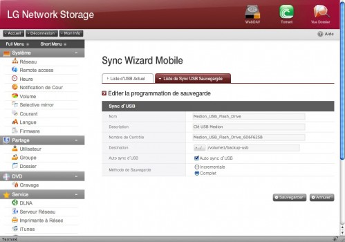 Au delà de la possibilité de vérifier les paramètres réseau (Adresse IP par exemple…) le vrai intéret pour moi c’est le couplage avec le système de copie/sauvegarde automatisée qui est intégré au Nas.