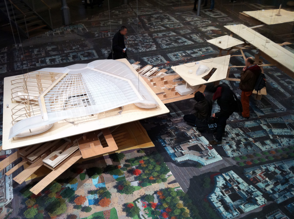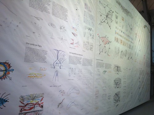 En effet, l’exposition consistant en une grande maquette, différents plans, croquis, maquettes de travail, et vidéos, n’est pas très légendée et il est difficile d’appréhender tout ça tout seul (même quand on a fait de l’archi).