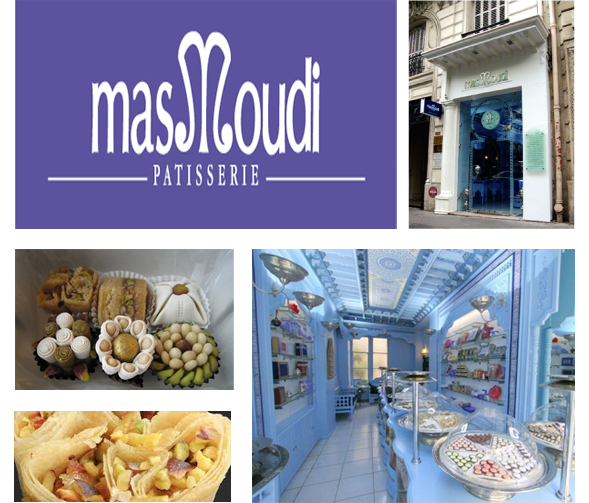 Masmoudi à Paris c’est au 106 Bd St Germain (6ème) et 64 Bvd Sébastopol (3ème) avec à cette dernière adresse un salon de thé au fond pour déguster sur place ces bijoux gourmands.