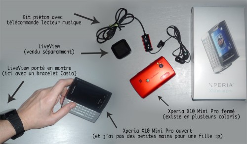 Vaguement dubitative quand au réel bon fonctionnement avec des téléphones d’autres marques, j’ai d’abord testé le LiveView avec le Xperia X10 Mini Pro, autre petite chose adorable à côté de laquelle j’étais passée.