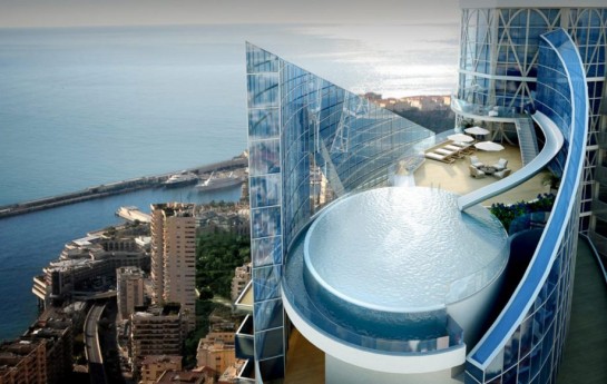 Réparti sur 5 étages, le Sky Penthouse possède deux piscines, une extérieure et intérieure, d’un tobogan et d’une terrasse avec une vue impressionnante.