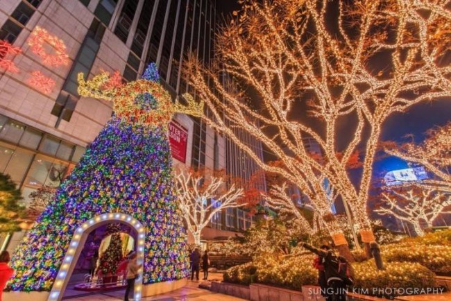 Le sapin de Noel à Séoul contient un autre sapin à l’intérieur. Tout l’environnement est décoré avec les guirlandes et l’ensemble est vraiment magnifique. De nombreuses places à Séoul sont décoré avec des dizaines d’arbres de Noel qui sont tous plus beaux les uns que les autres.