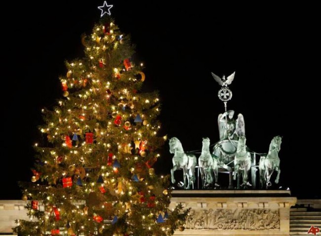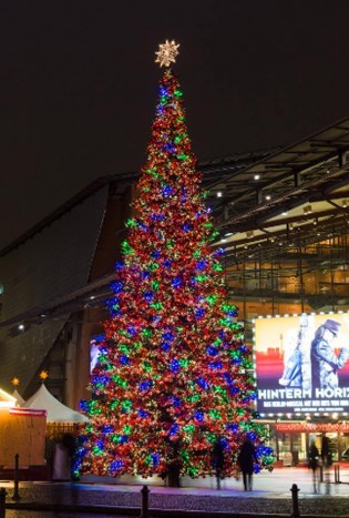 Le sapin de Noel sur la Potsdamer Place est le plus classique possible. D’une hauteur vertigineuse, très symétrique et illuminé avec des guirlandes jaunes. Le sapin à coté de la Porte de Brandenburg est également superbe, mais Berlin possède également de nombreux arbres de Noel dans les places emblématiques de la ville.