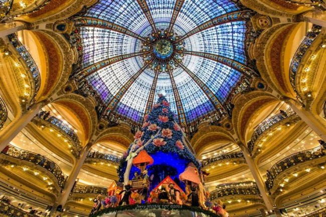 Les fameuses galeries Lafayette n’ont pas manqué leur rendez-vous avec leur fabuleux sapin de Noel. Le sapin est magnifique, mais Paris possède un sapin de Noel éternel avec la Tour Eiffel.