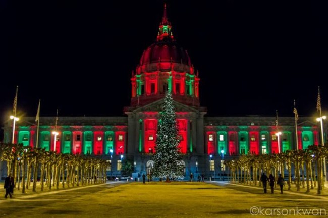 La ville de San Francisco est fière d’avoir l’un des plus beaux sapin de Noel des Etats-Unis. Il se trouve à la Mairie, mais on a également d’autres sapins de Noel dans les centres commerciaux. Celui du pont du Golden Gate reflète un cœur.