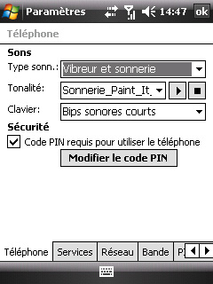Dans les paramètres "Téléphone" cliquez sur l'onglet "Bande"