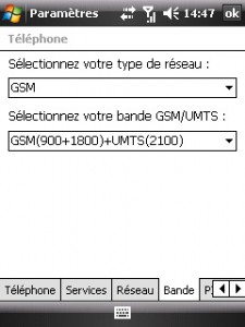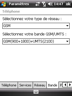 Sélectionnez « GSM » comme type de réseau et « GSM(900+1800)+UMT(2100). Pour terminer cliquez sur « Ok ».