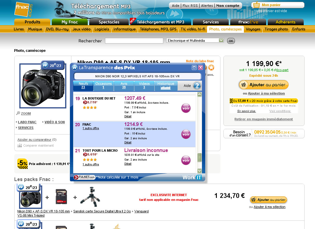 Le widget WorkIT analyse et compare tous les jours les prix de plus d’une centaine (pour l’instant) de cyber-marchands sur plus d’un million de produits High Tech et éléctro-ménagers… alors oui, pour l’instant le widget se limite à ce type de produits, mais j’ai demandé et on peut espérer un élargissement des domaines prochainement o//.