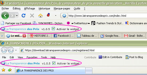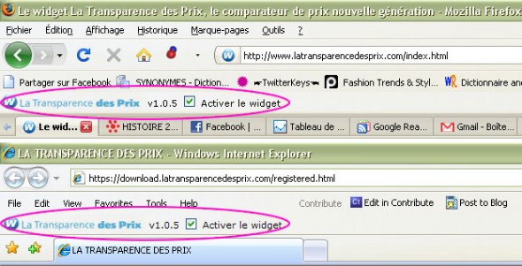 Compatible avec tous les systèmes (Windows, Mac, Linux), le widget une fois installé se retrouve dans la barre d’outil de votre navigateur internet (Internet Explorer ou Firefox) et s’active et se désactive en 1 clic (parce que oui ça peut vite être envahissant sinon).