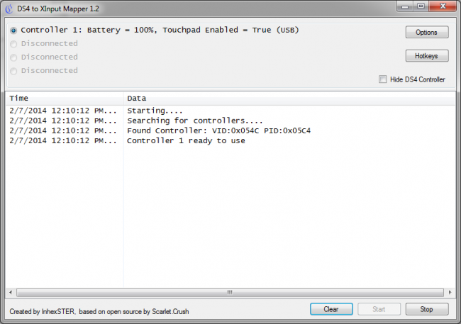 Retournez dans le dossier DS4Tool et lancez l’exécutable ScpServer. A ce point, votre manette DualShock 4 doit être détectée par l’application et elle devrait fonctionner comme une manette Xbox 360. Mais certaines applications ont des problèmes de compatibilité et si c’est le cas, alors vous aurez besoin de cocher l’option Hide DS4 Controller, mais en général, tout devrait fonctionner normalement.